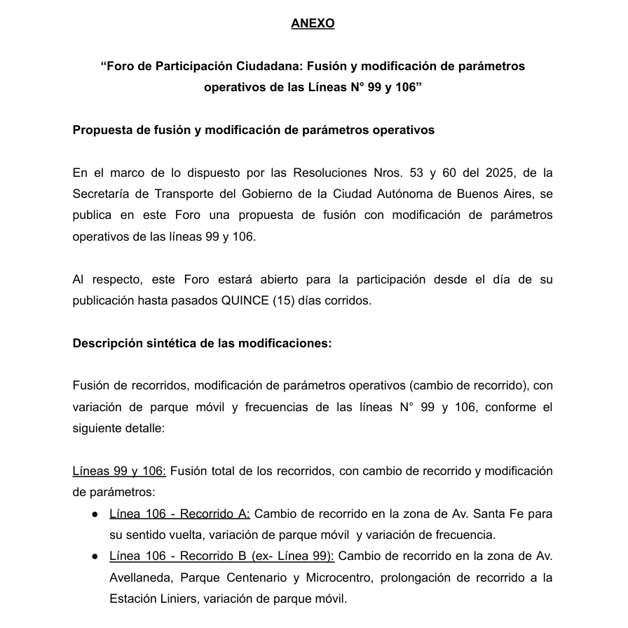 Desde el 1° de Enero de 2026, la Línea 99 se convertirá en el Ramal B de la Línea 106.